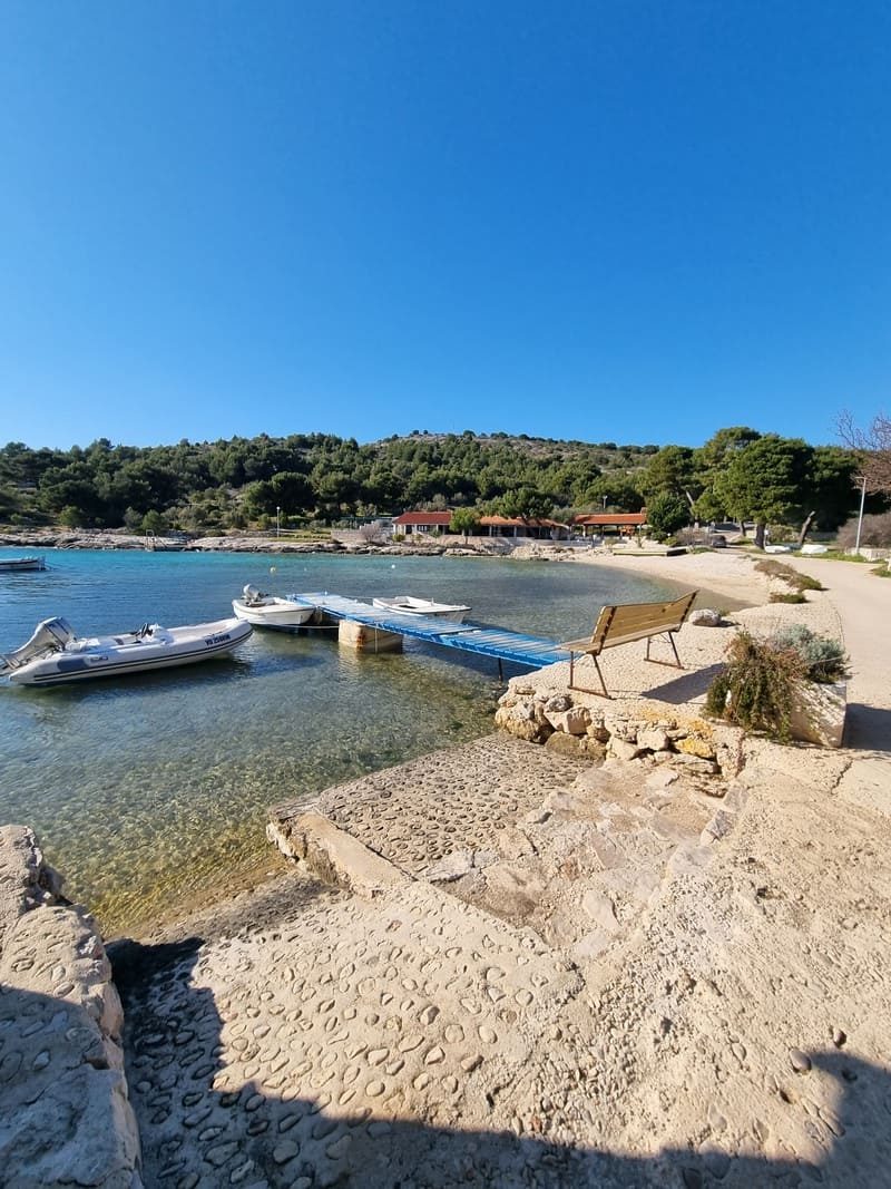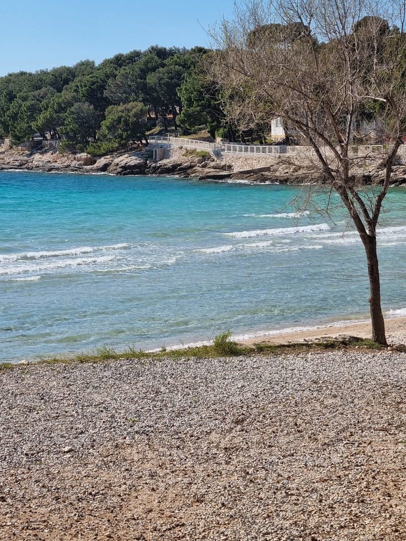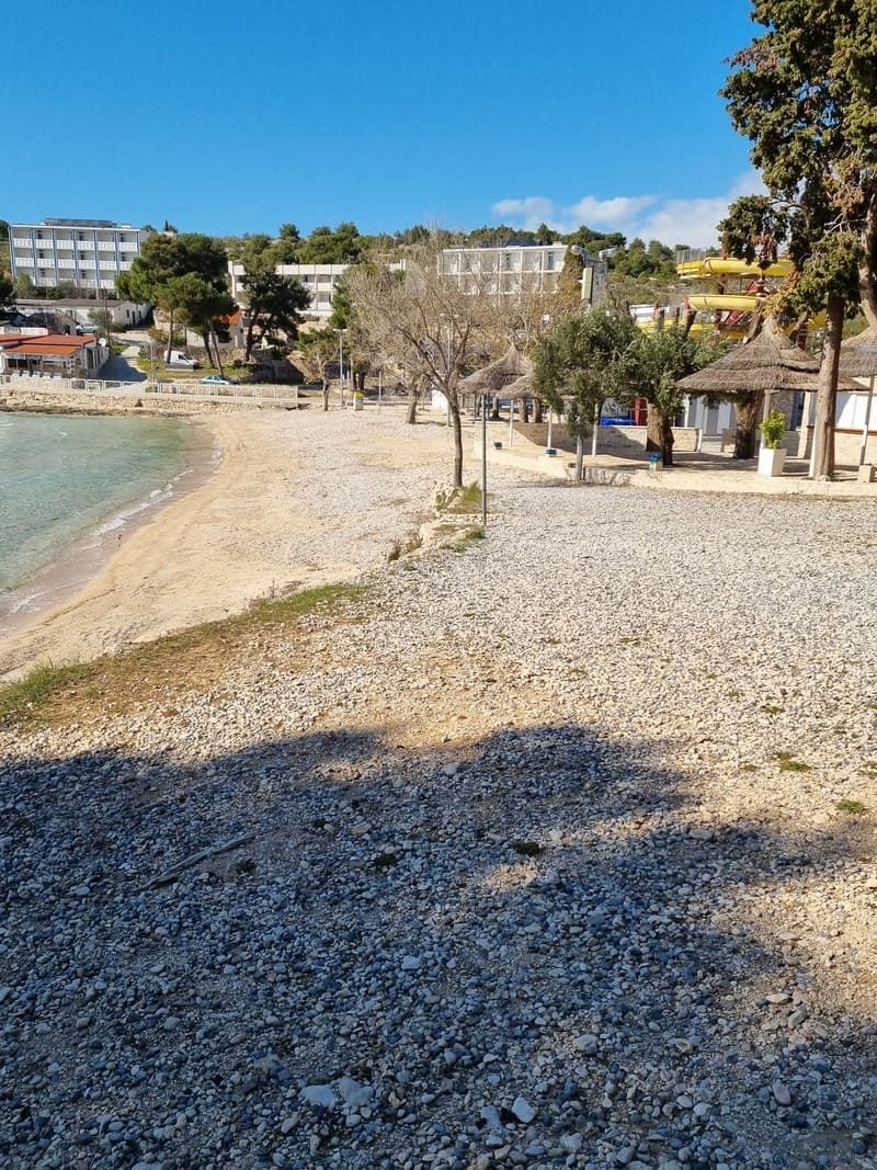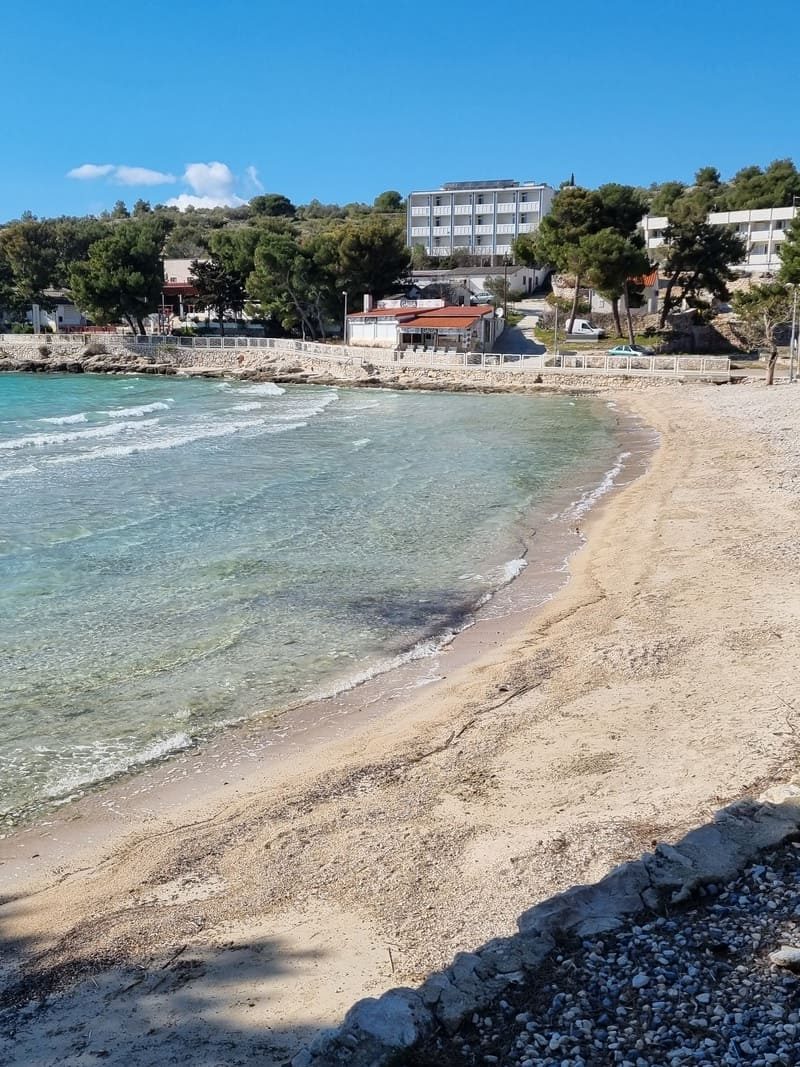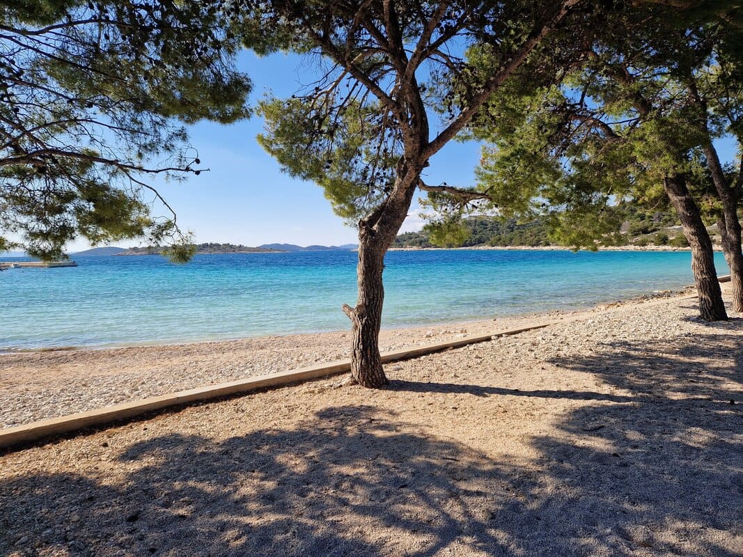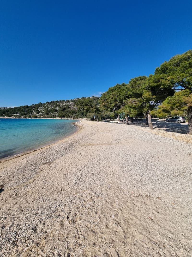The beach is located in a small bay and has a pier. Swimming in the clear sea, unspoiled nature with plenty of shade and a well-kept beach. The beach is rocky on the side and in the middle part it consists of pebbles. The sandy part is in the minority. The shade on the beach is provided by mighty pine trees. From the beach you can admire the Kornati National Park. The beach is not located in a deep bay and is protected from waves and wind.